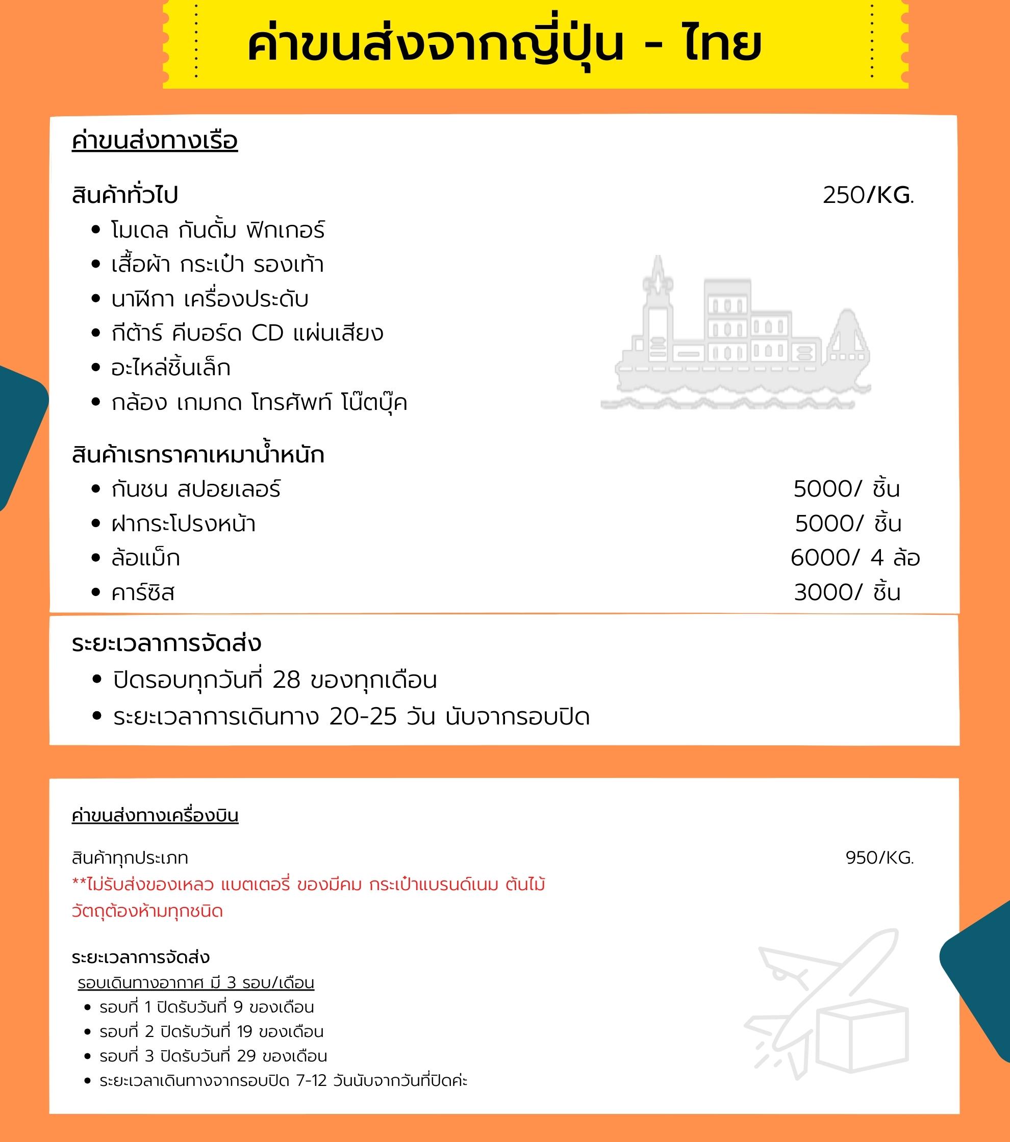 ขั้นต่ำค่าส่งญี่ปุ่นมาไทย